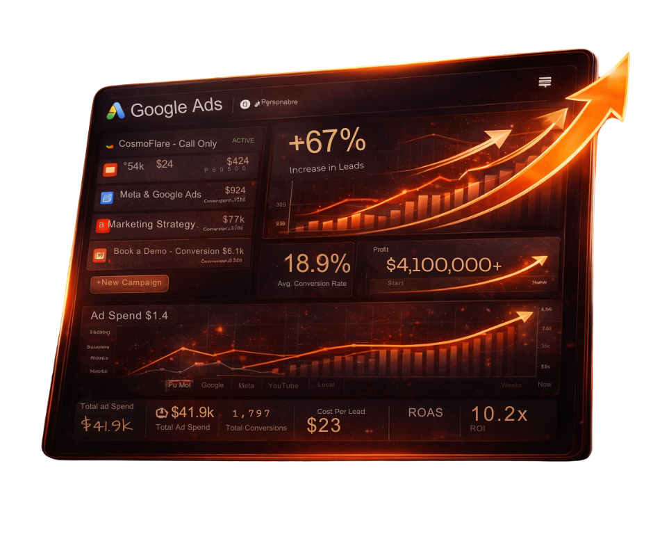 At Cosmoflare, we take pride in being your trusted partner for exceptional digital marketing services—from custom websites to effective lead generation. Since 2016, we've empowered businesses to thrive online, blending expert strategies with innovative design to elevate digital presence and capture customers like never before.